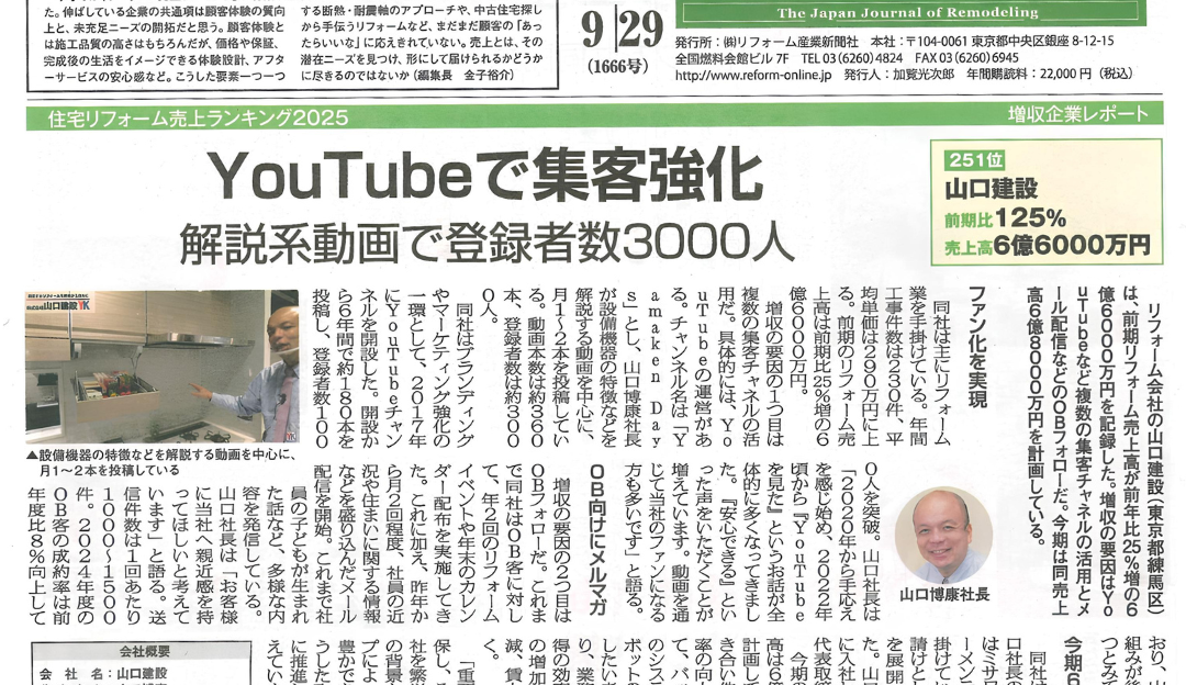 売上増収についてリフォーム産業新聞から取材を受けました