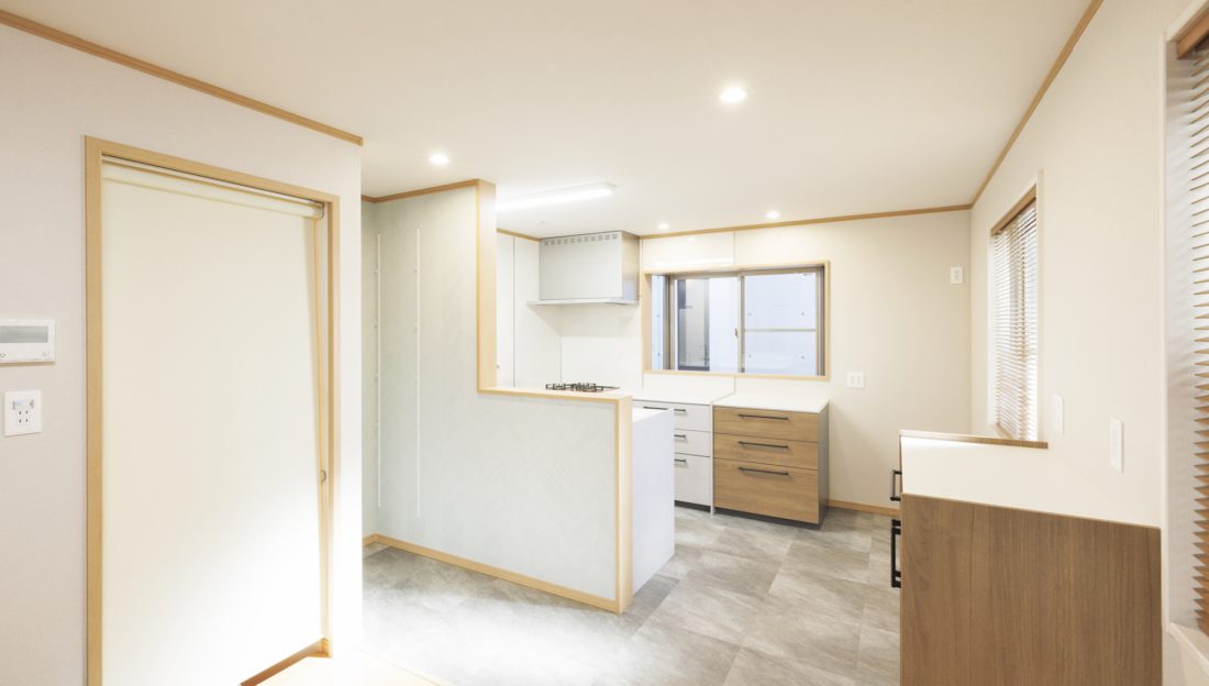 実家継承リフォーム|大胆な間取り変更で、対面キッチンが主役の2階LDKへ。将来も…