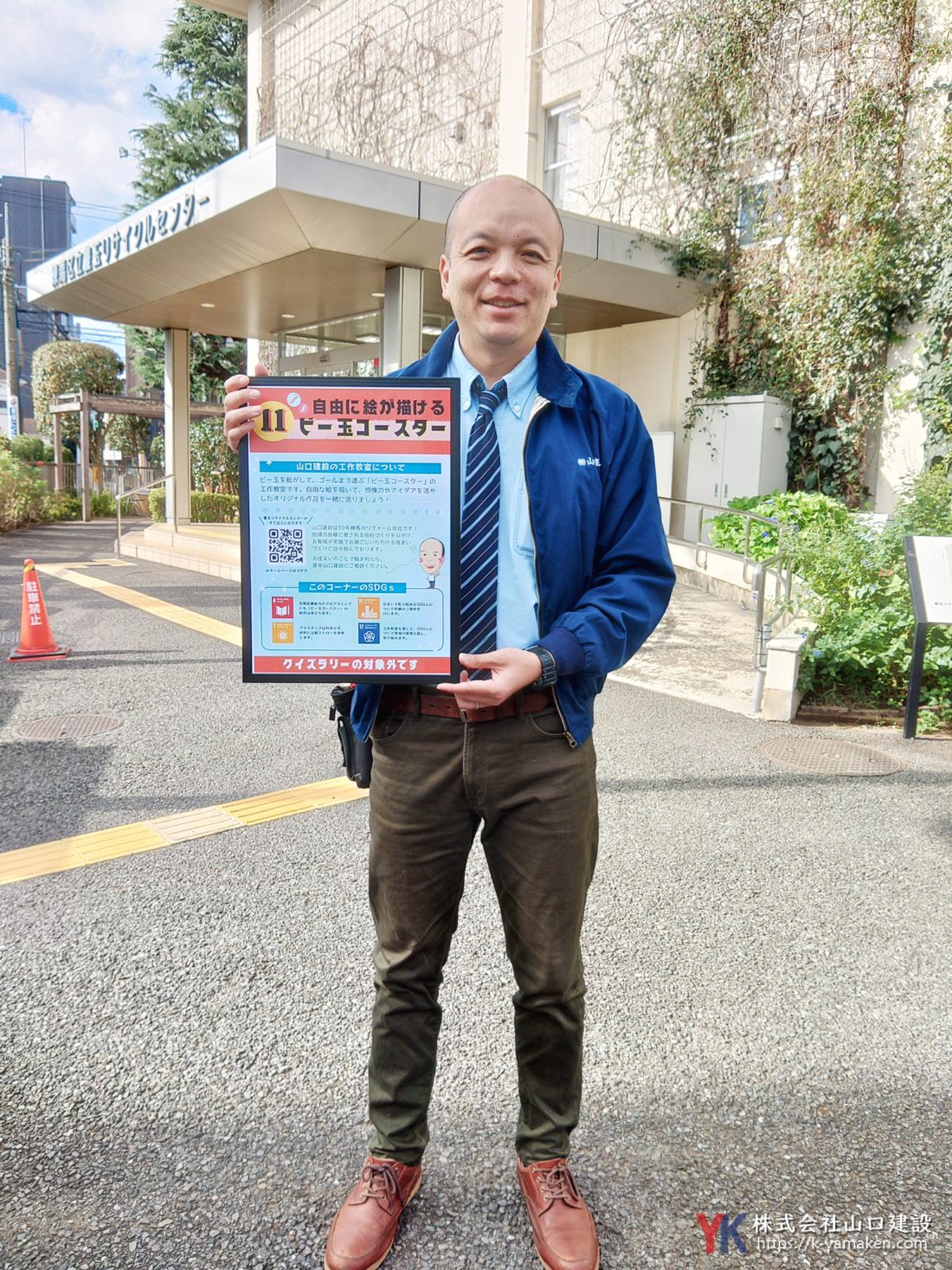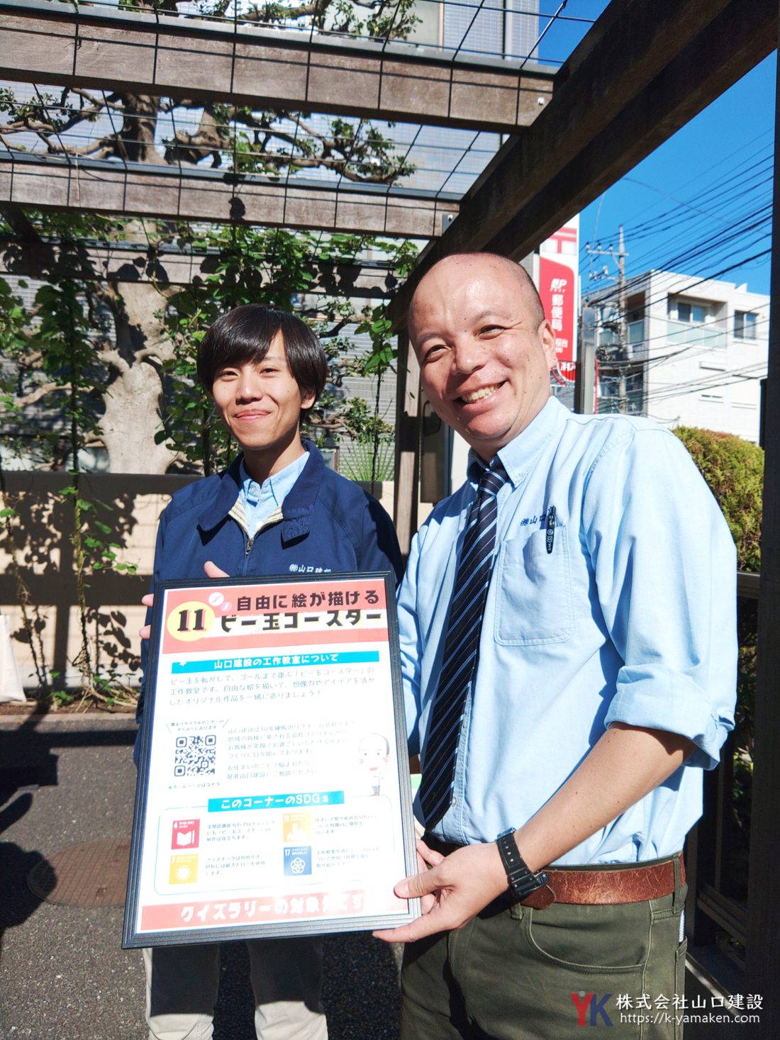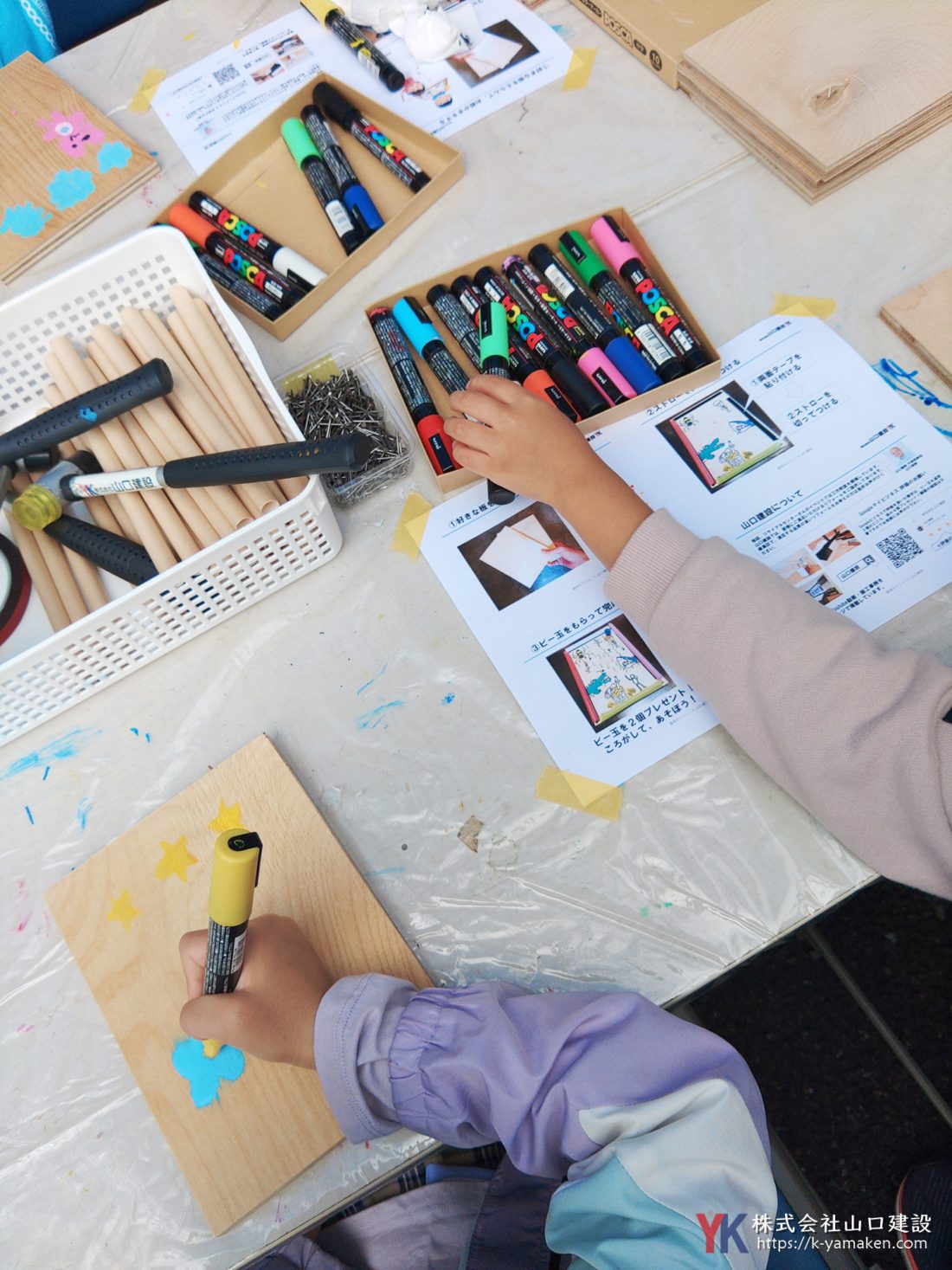 当日、山口建設は「ビー玉コースター」の工作教室を開催いたしました。ビー玉を転がして、ゴールまで運ぶ、レトロなおもちゃですが、実はプログラミングにも役立つと言われています。