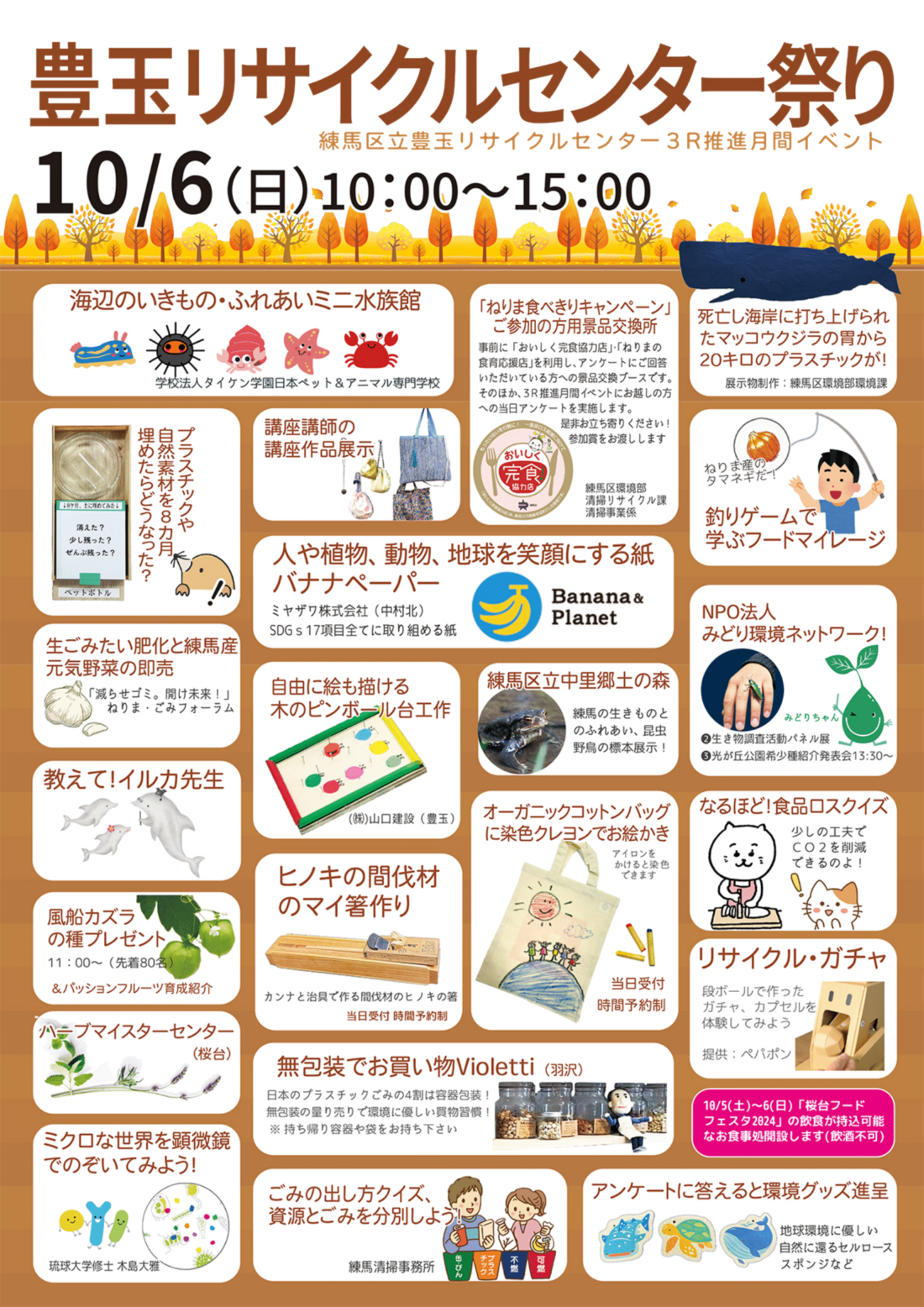 10月5日(土)~6日(日)に桜台駅周辺が1年で1番賑わう「桜台フードフェスタ2024」が開催され、豊玉リサイクルセンターもフードフェスタイベントの1拠点となります。