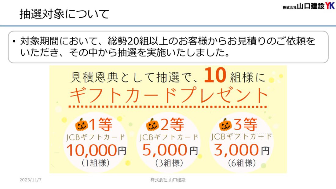 「ヤマケン大抽選会(見積恩典)」抽選結果について(2023年10月1日~10月31日開催)