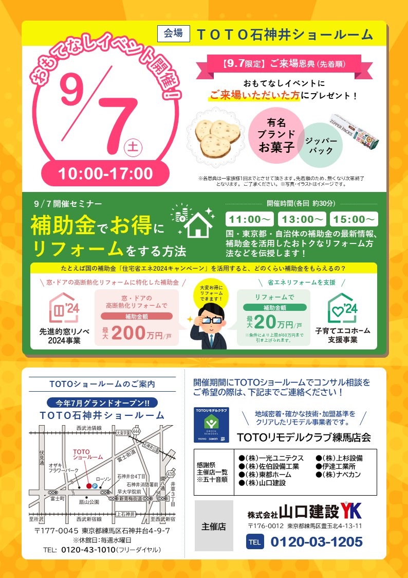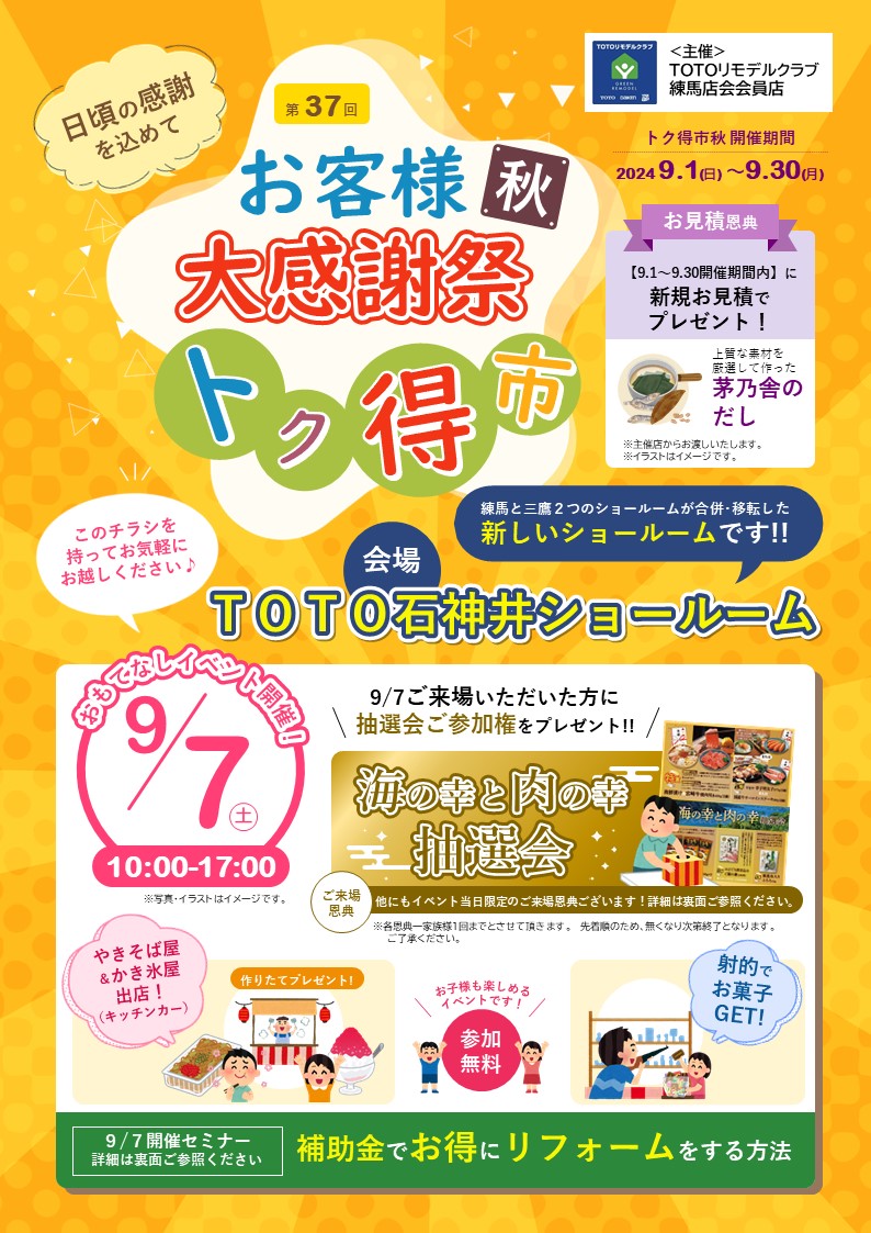 弊社を含めたTOTOリモデルクラブ練馬店会主催で共同のトク得市を開催いたします。