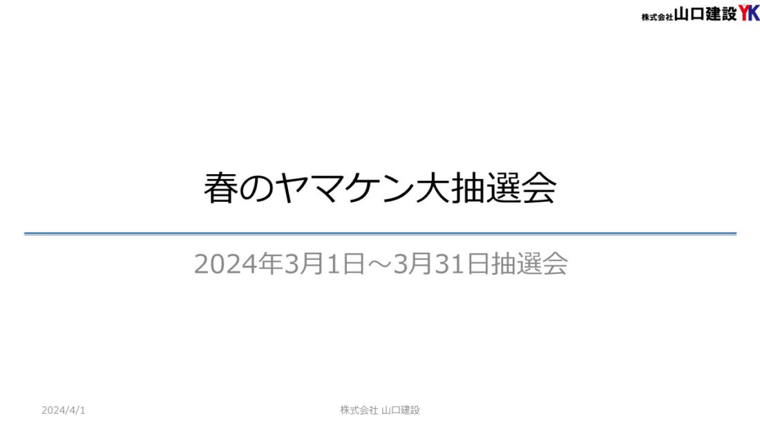 「ヤマケン大抽選会(見積恩典)」抽選結果について(2024年3月1日~3月31日開催)